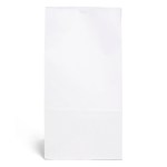 Durable white paper S.O.S. Bag features a side gusset and a serrated cut top. 7 1/8″ W x 4 3/8″ D x 13 7/8″ H