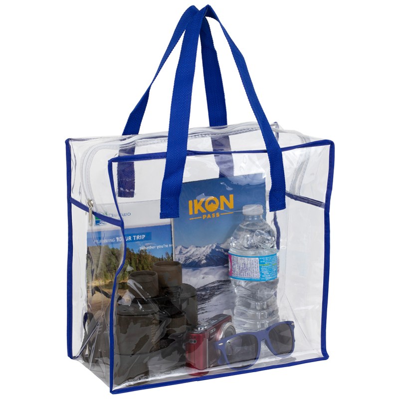 Go for the touchdown with this new clear Stadium Tote Bag with popular trim color options. The 20″ long reinforced handles make it easy to carry with you all day. Meets new Stadium Bag Policy Guidelines! Sports fans will be cheering all season long. 12″ W x 12″ H x 6″ D