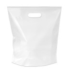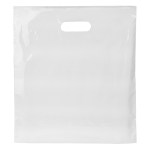 The 12W x 13 1/2H x 3 Digital Full Color Die Cut Bag is made with 2.0 mil plastic, non-reinforced die cut handles, and a bottom gusset for more storage space. The Digital Full Color print process showcases artwork with crisp colors, a generous imprint area, and exceptional clarity for small fonts, fine lines, and details. 12″ W x 13 1/2″ H x 3″ D