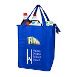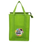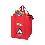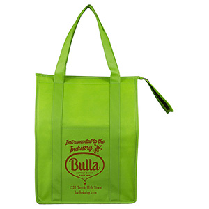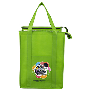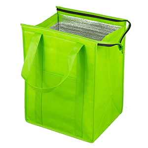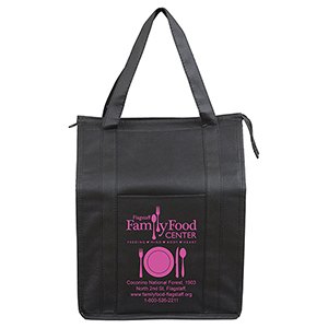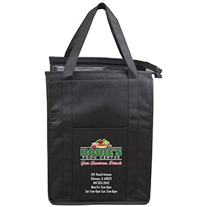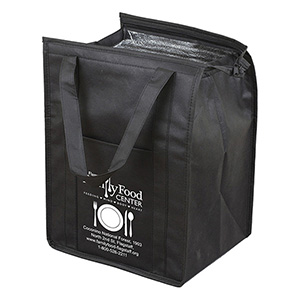 Make your bag a promotional success! Made with 80GSM non-woven polypropylene, a 10″ gusset and 20″ long reinforced handle straps for comfortable carrying. Front Pocket Size: 6″ W x 8″ H. Bottom hard panel reinforced insert included plus comes with lead free aluminum thermo insulation lining to keep your food hot or cold. Zipper closure, front slip-in pocket, and a black PE reinforced bottom insert included. Reusable. Complies with CPSIA, Prop 65. 12″ W x 16″ H x 10″ D