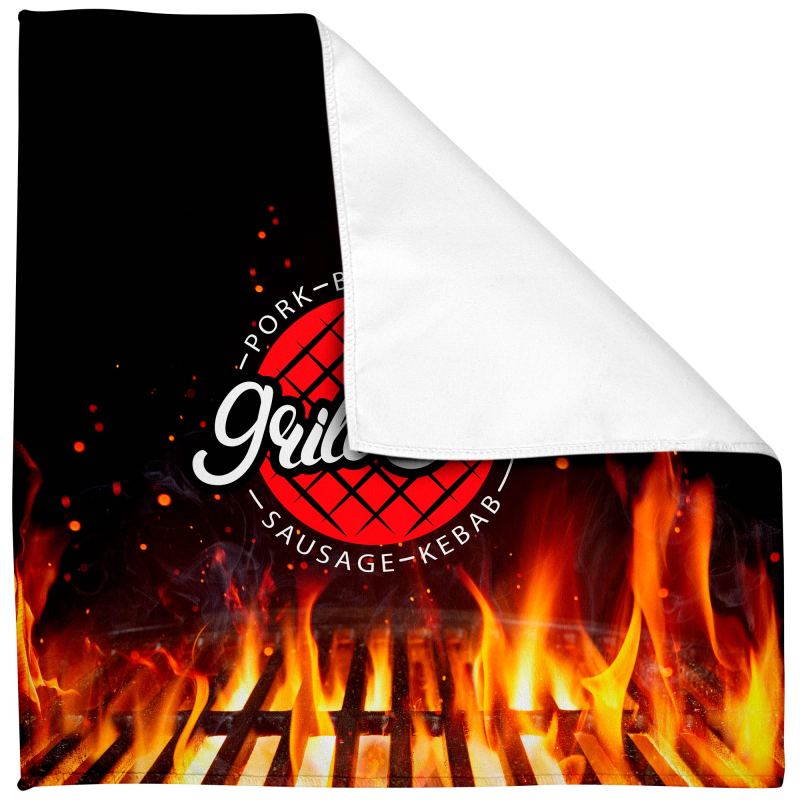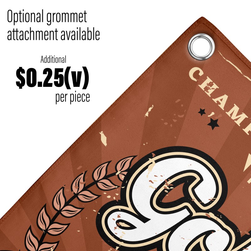 This 12″ x 12″ sublimated towel is made of soft and absorbent 200 GSM micro fiber material. Lightweight and quick drying. Optional grommet attachment available. 12″ W x 12″ H