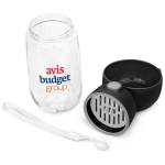 Take your furry friend on a fun adventure to the park, trails, or just enjoy some playtime in the backyard with the Pet 13 Oz. Water Bottle with 6 Oz. Bowl! Your pet will always have access to fresh water and snacks with this convenient accessory. The leak-proof push button allows for easy access to water with just a quick press. Refilling is a breeze thanks to the wide-mouth opening. Plus, the built-in bowl can also be used as a feeder. Attach the wrist strap for easy carrying, and when not in use, the bottle stands upright for convenient storage. Complies with Prop 65. 3 1/2″ W x 10 1/4″ H