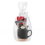 14 Oz. Cork Bottom Ceramic Mug Gift Set F includes: 2- Mount Hagen® Instant Coffee, 1- Ghirardelli® Hot Cocoa, 2- Twinings Black Tea Packets. Complies with ASTM, CPSIA, C-TPAT, FDA.