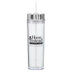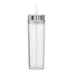 The 14 oz Pandora Frio Tumbler with Metallic Lid is a compact double wall plastic tumbler with a metallic lid and clear straw, priced as a clear insert ready cup that can be upgraded with film, metallic, paper or glitter inserts for extra visual impact while remaining top shelf dishwasher safe for everyday reuse. Complies with ASTM, CPSIA, C-TPAT, FDA.