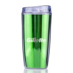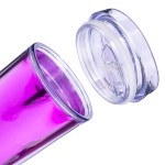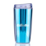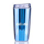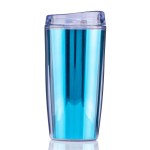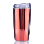 The TM71M 14 oz Ringo Metallic Tumbler is a compact double wall SAN plastic tumbler that adds a metallic look to everyday beverage service. A metallic insert sits between the inner and outer walls, giving the cup a reflective appearance, while the pop off lid and top rack dishwasher and microwave safe care make it practical for repeated use in office, campus and event programs. Complies with ASTM, CPSIA, C-TPAT, FDA. 2.5″ Diameter