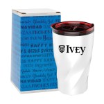 Toast the success of your next campaign with this 14 oz. stainless steel twisting tumbler! Offered in black or white, this stylish tumbler features a polypropylene insert and twisted exterior that will help separate your brand from the bunch. 6″ H x 3.5″ Diameter