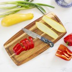 The TB Home® 14″ Acacia Wood Serving & Cutting Board with Juice Groove is a perfect addition for any kitchen. It offers plenty of cutting surface while still being small enough to conveniently store. The TB Home® Acacia Cutting Board also features a juice groove running around the exterior of the board to trap & hold excess juices that run off from roasts, meat & juicy fruits. It’s reversible as well, the back side offers a totally flat cutting surface that doubles wonderfully as a dough board. Complies with Prop 65. 14″ L x 7″ W x 5/8″ Thick