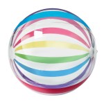 Get the crowd going by tossing this Multi Color Stripe Beach Ball up in the air! Measuring 16″, this translucent beach ball features several different colored stripes that give it a unique look. Great for the beach, concerts, pool, a day in the park and more. Customize yours with an imprinted brand name, logo or message to create a cool summertime giveaway! Complies with CPSIA, Prop 65. 16″ Diameter
