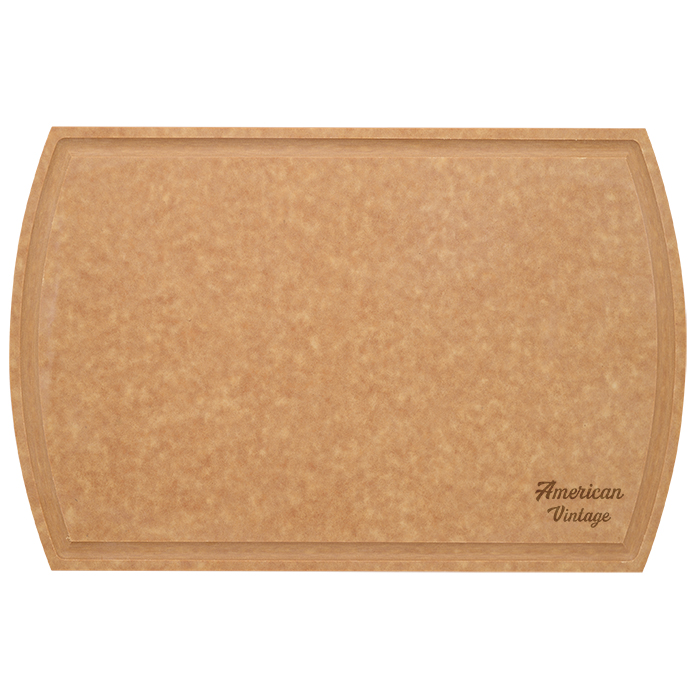 Crafted out of composite wood fiber. Ideal for chopping, preparing, and serving. Perimeter groove keeps juices contained. Hand wash only. Due to the natural variations in wood, boards can vary in color and pattern. Made in North America. Please refer to the cutting board care and conditioning instructions for detailed information regarding the care and maintenance of natural wood cutting boards. 16″ D x 0.25″ W x 10.5″ H