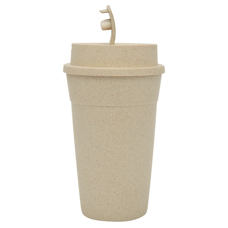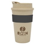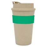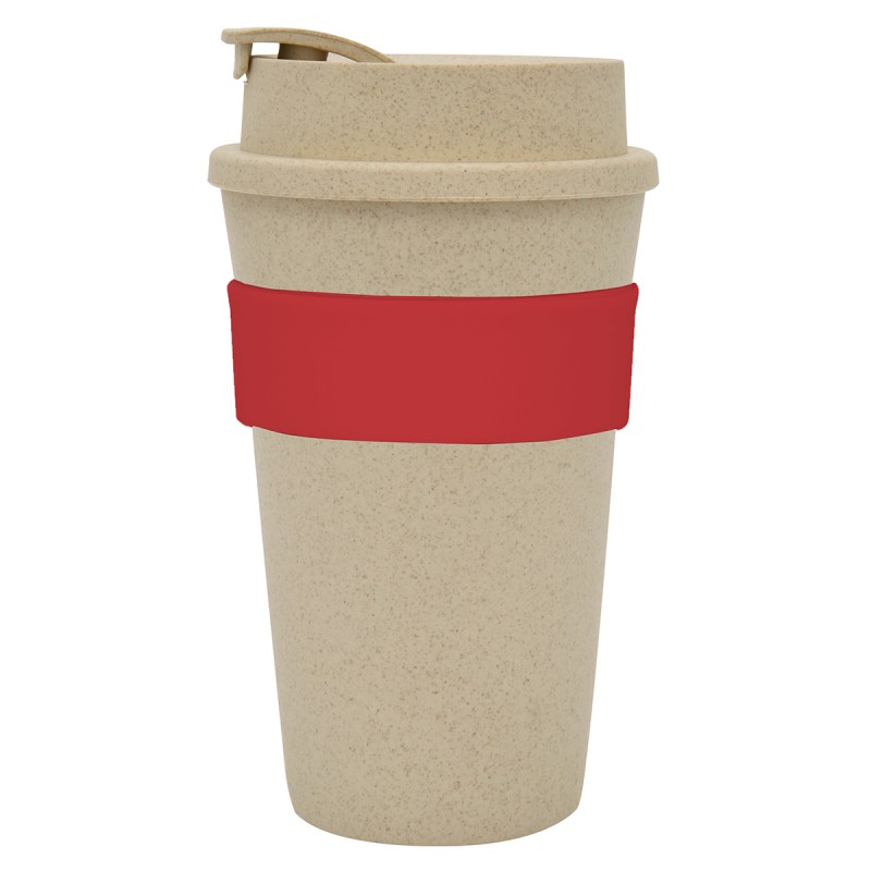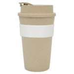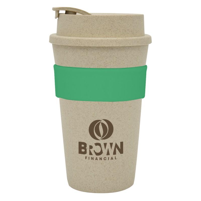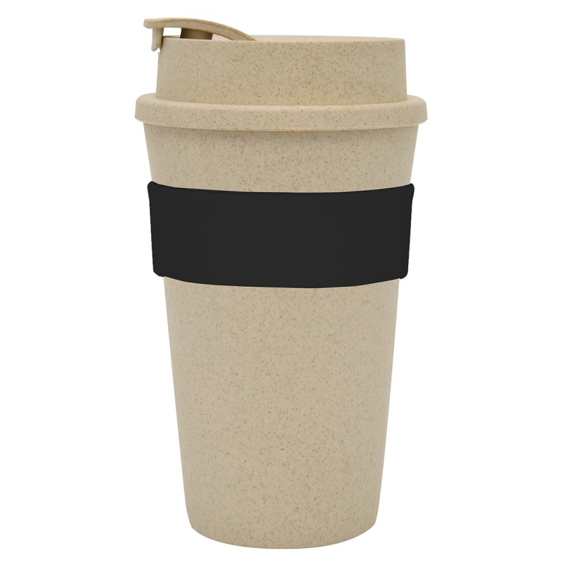 Wheat Straw Polypropylene. Choose Your Own Color Combination. Screw-On, Spill-Resistant Sip Through Lid. Silicone Band For Easy Comfort Grip. Meets FDA Requirements. Complies with Prop 65. 6″ H