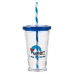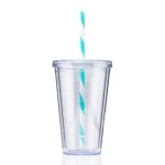 The TM50S 16 oz Slurpy with Colored Lid and Striped Straw Tumbler is a clear double wall AS plastic tumbler built for fun, reusable beverage promotions. With a striped straw, colored lid, imprint locations on the lid and bottom, and optional film, paper or glitter inserts, it delivers a flexible platform for branded drinkware programs that want both function and visual pop. Complies with ASTM, CPSIA, C-TPAT, FDA.