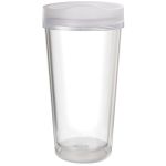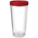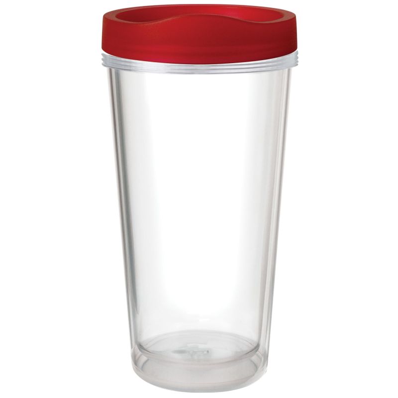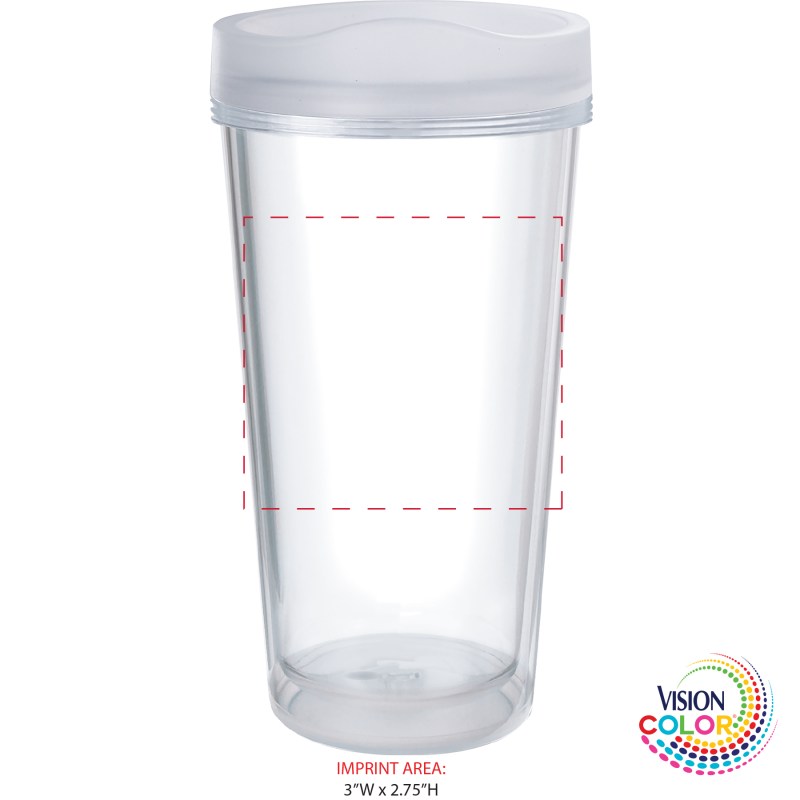 ThermalClear 16 oz. Double Walled Acrylic Tumbler with a thumb-slide, drink through lid. Includes Full Colors Digital Imprint. Hand Wash Only. Complies with Prop 65. 3 3/4″ W x 7 1/8″ H