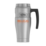 This rough and tumble stainless steel travel mug is great for long treks or long road trips—to the wilderness or across town. The Stainless King™ Travel Mug is an extremely durable vacuum insulated mug that holds both hot and cold beverages. It’s a dependable, always-at-the-ready product that can be used all year long, in any kind of condition. Your hot drink stays hot while the mug exterior stays cool. The sealing DrinkLock™ lid is leak-proof, but make sure you double check that it’s closed. Complies with Prop 65. 4.9″ W x 3.3″ D x 7.8″ H
