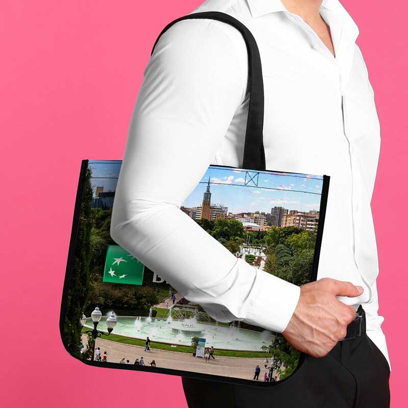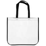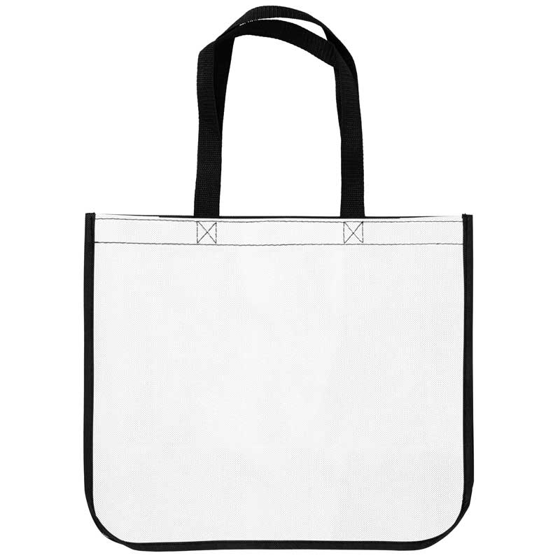 Constructed of 140 GSM polypropylene non-woven laminated material. Additional optional imprint location is 16″l x 8½”w on the bottom. Complies with Prop 65. 16″ L x 6 1/2″ W x 14″ H