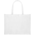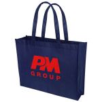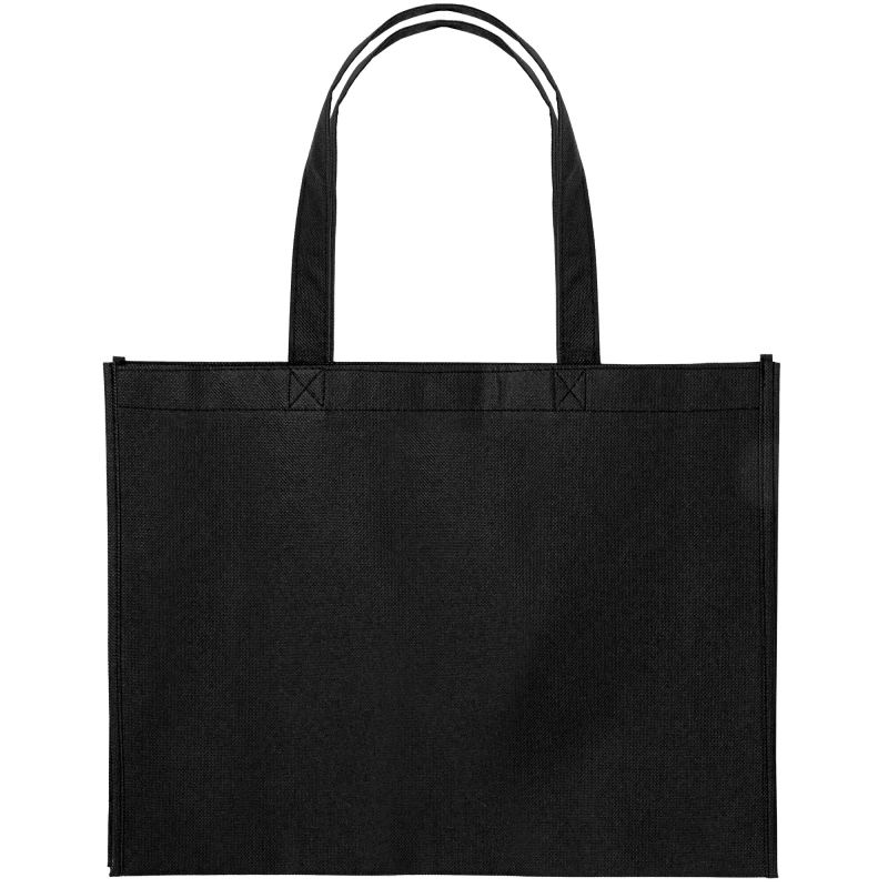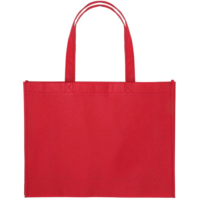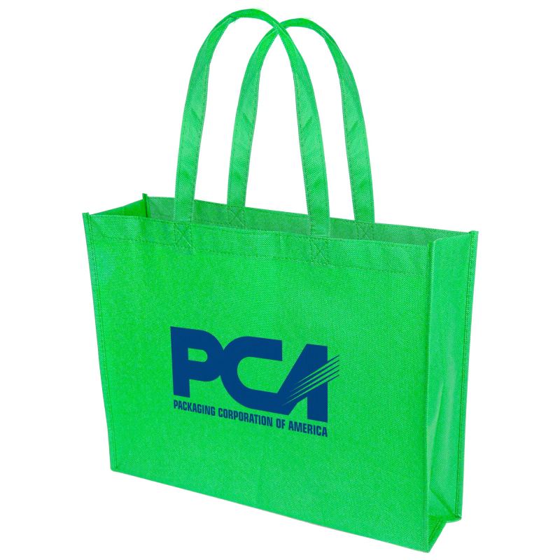 Non-woven 80GSM material, durable stitched handles, eco-friendly, polypropylene, made of 100% recycled materials. 16″ W x 12″ H
