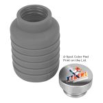 This is a great travel item because it shrinks from 8 inches tall down to about 4 1/2 inches. Made from food grade FDA approved silicon which is non-toxic and BPA free. Dishwasher and Microwave safe (except for the lid). Safe for liquids up to 140 degrees F. Complies with Prop 65. 6 5/8″ H