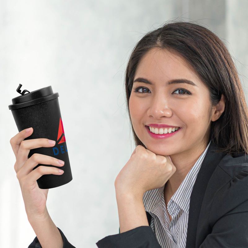 A fantastic way to promote sustainability, this coffee mug reduces plastic use by infusing eco-friendly wheat straw, which is renewable and sustainable. Features: 50/50 wheat straw & plastic blend. Holds 17 ounces. Screw-on lid. Microwave & dishwasher safe. 7″T. Complies with Prop 65. 7″ H