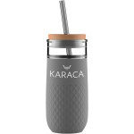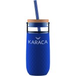 Glass Bottle, Silicone Boot, BPA-Free, Eco Drinkware, Reusable Bottle, Wood Lid. 9.5″ H x 3.125″ W