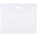 The 18W x 15H Digital Full Color Die Cut Bag is made with 2.0 mil plastic and non-reinforced die cut handles. The Digital Full Color print process showcases artwork with crisp colors, a generous imprint area, and exceptional clarity for small fonts, fine lines, and details. 18″ W x 15″ H