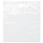 This lo-density 2.5 mil plastic bag features fold-over reinforced die cut handles and a bottom gusset. 18″ W x 20′ H x 4″ D