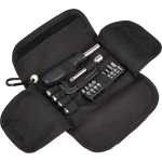 This 19-PieceTool Set is travel-ready and up for any job. Set includes: a screwdriver handle, a screwdriver connector, 3 hex keys, 4 sockets and 10 driver bits. All of which fits nicely in the fold up rPET pouch with hook-and-loop clasp. Set also includes a clip-on carabiner, perfect for hanging storage or attaching to utility bags. 1.00″ D x 3.50″ W x 6.00″ H