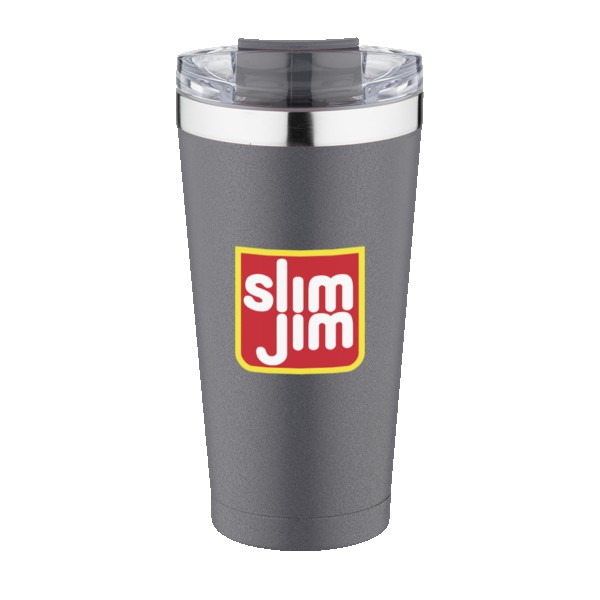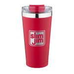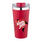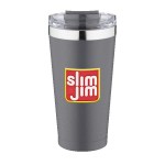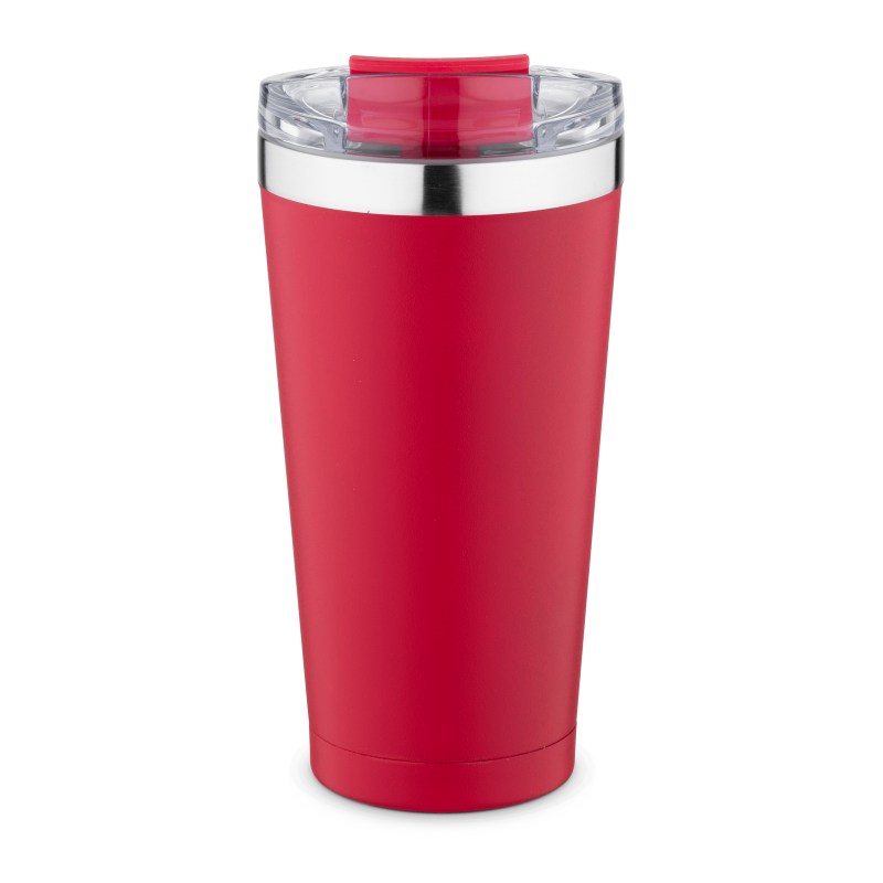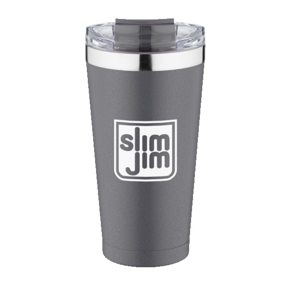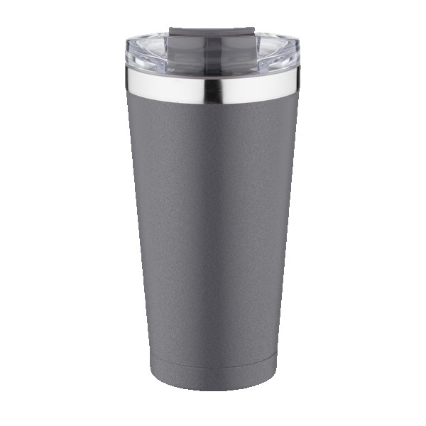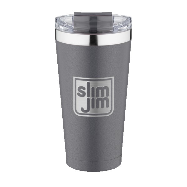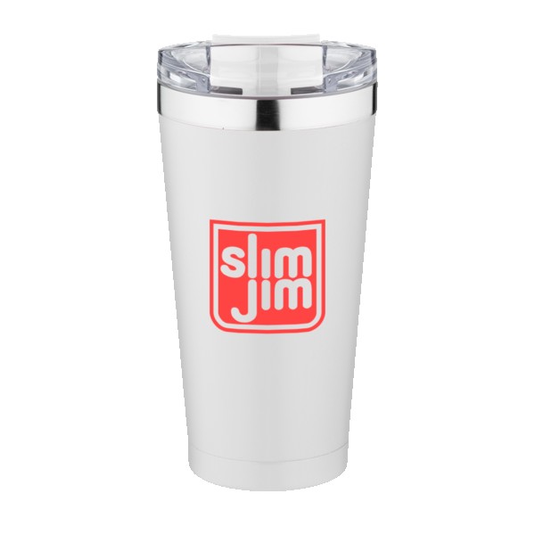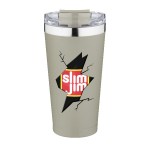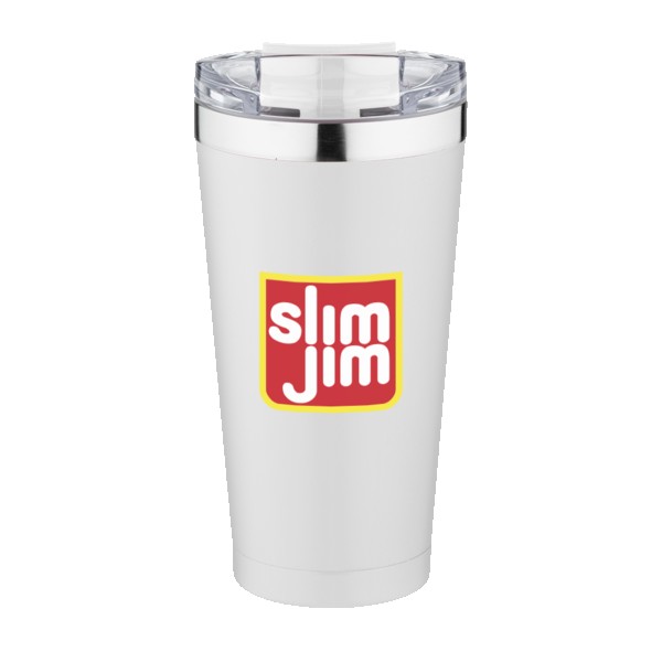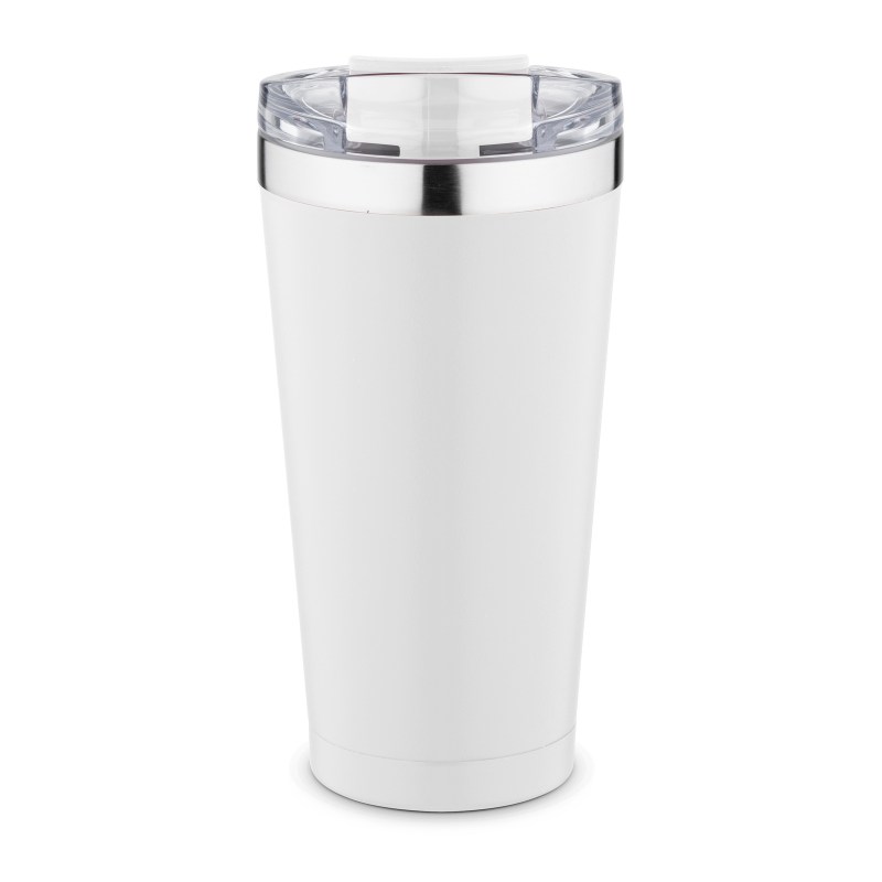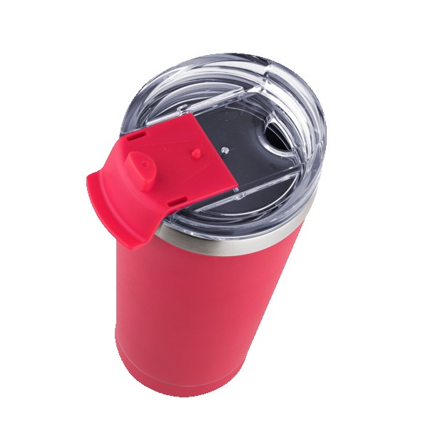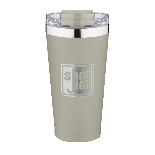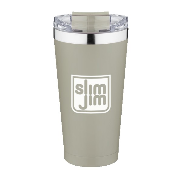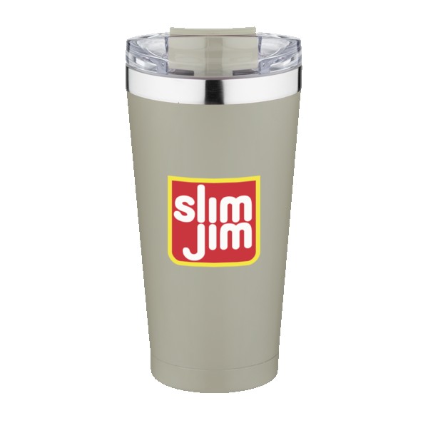 20 Oz. Heavy duty double wall stainless steel vacuum insulated tumbler. Features a clear AS screw-on lid with color matched PP flip top spout cover. Powder coat finish with copper lining and brushed silver accents; double wall 201/304 stainless steel. Fits in standard cup holders. Not microwave safe; hand wash only. 7.75″ H x 3.875″ W