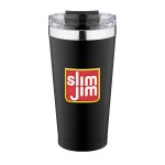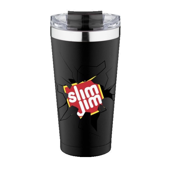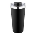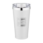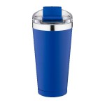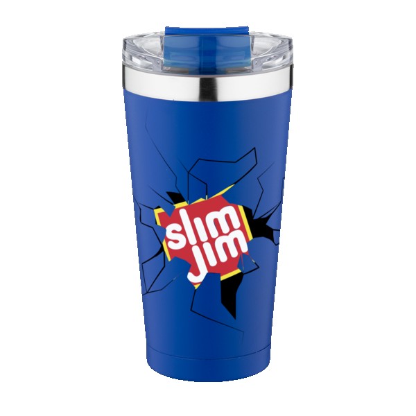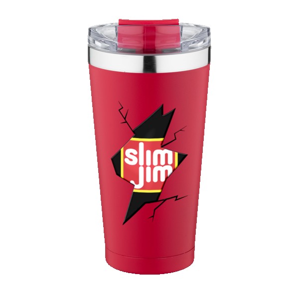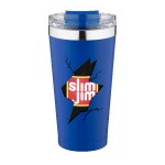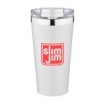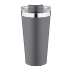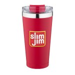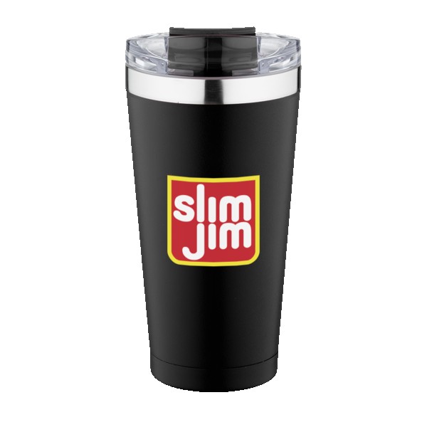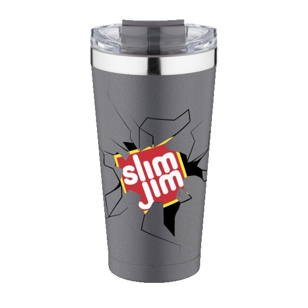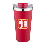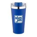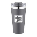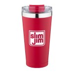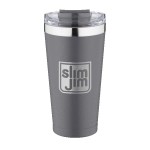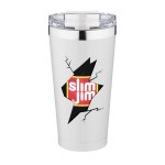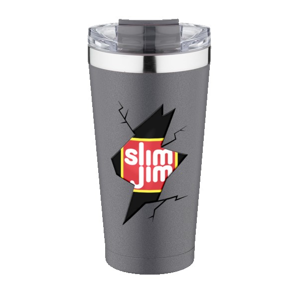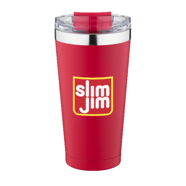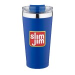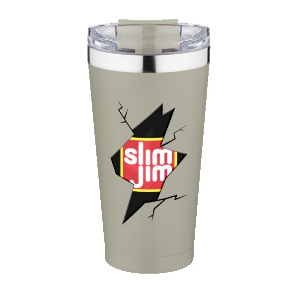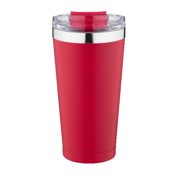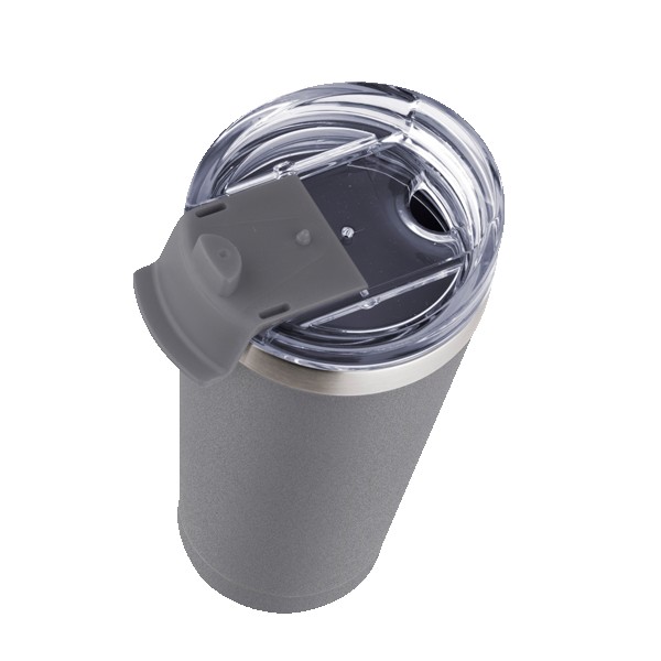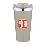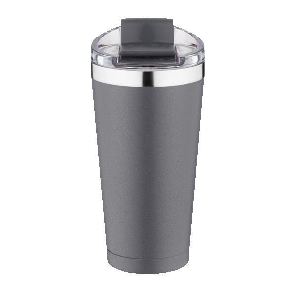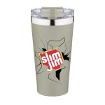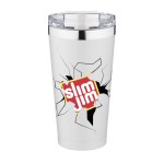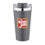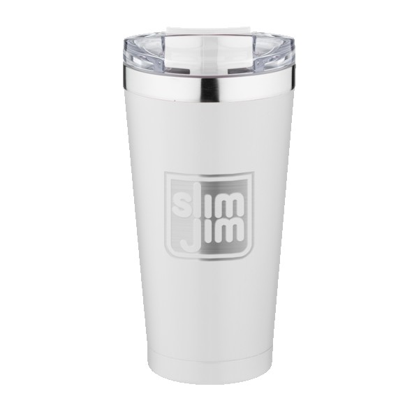 20 Oz. Heavy duty double wall stainless steel vacuum insulated tumbler. Features a clear AS screw-on lid with color matched PP flip top spout cover. Powder coat finish with copper lining and brushed silver accents; double wall 201/304 stainless steel. Fits in standard cup holders. Not microwave safe; hand wash only. 7.75″ H x 3.875″ W