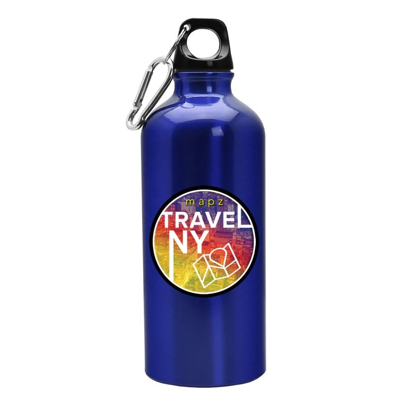 20 oz Aluminum Water Bottle with screw lid and carabinerImprinted in Full ColorLight and durable perfect for any promotionShips assembled no extra chargeBPA free/FDA Compliant ? Safe for Food ContactGreat for outdoor activities like hiking. camping. and retreats. Complies with ANSI, CPSIA, FDA, Prop 65. 8.25″ H x 2.875″ Diameter