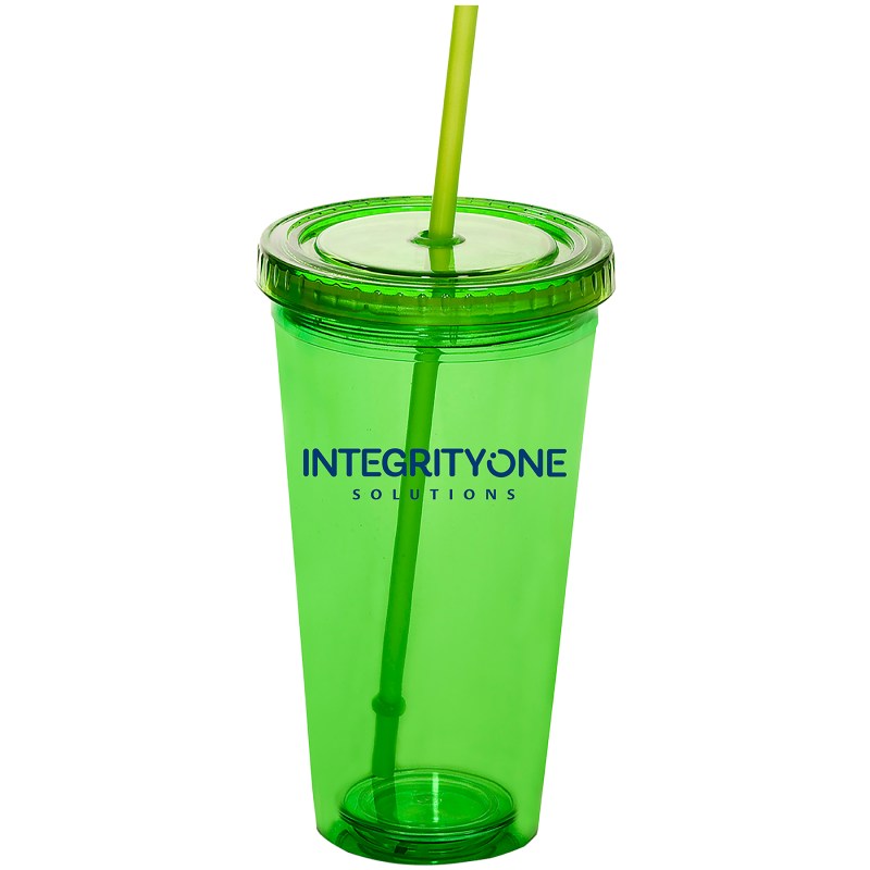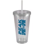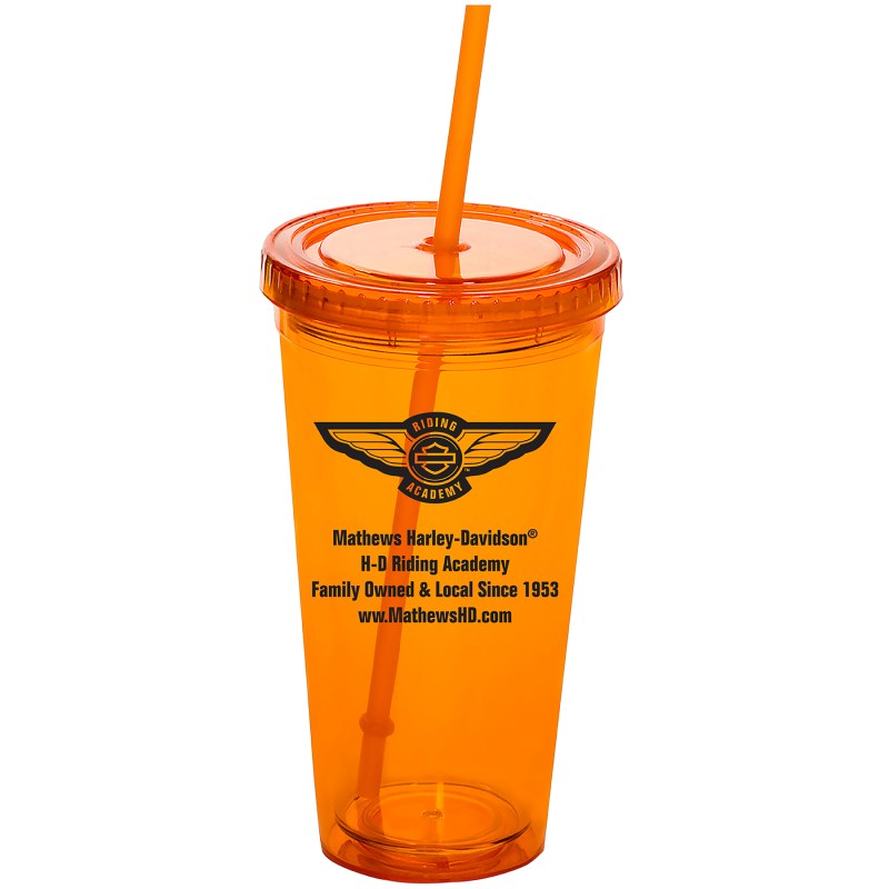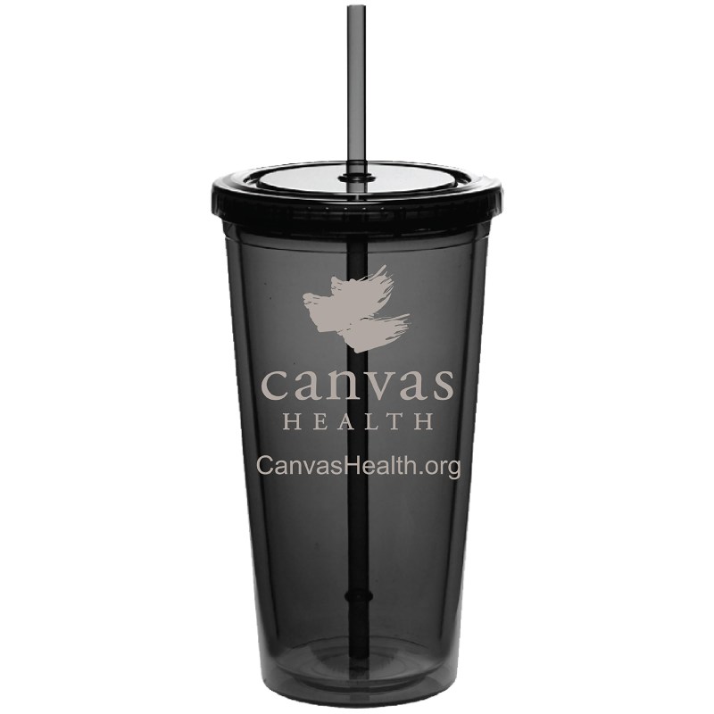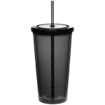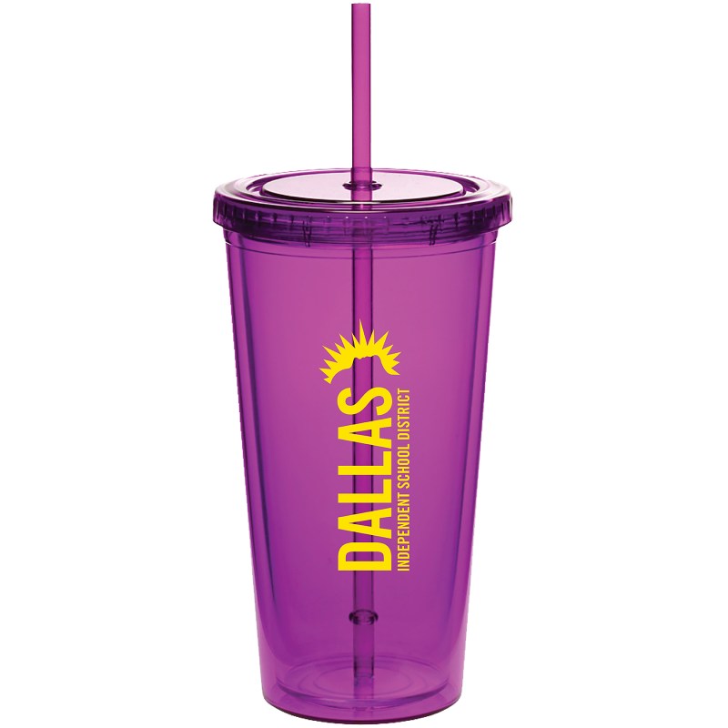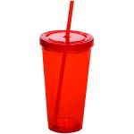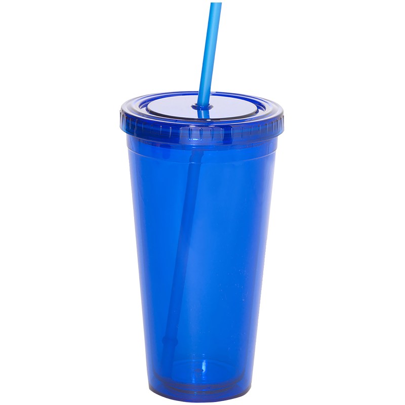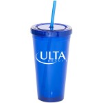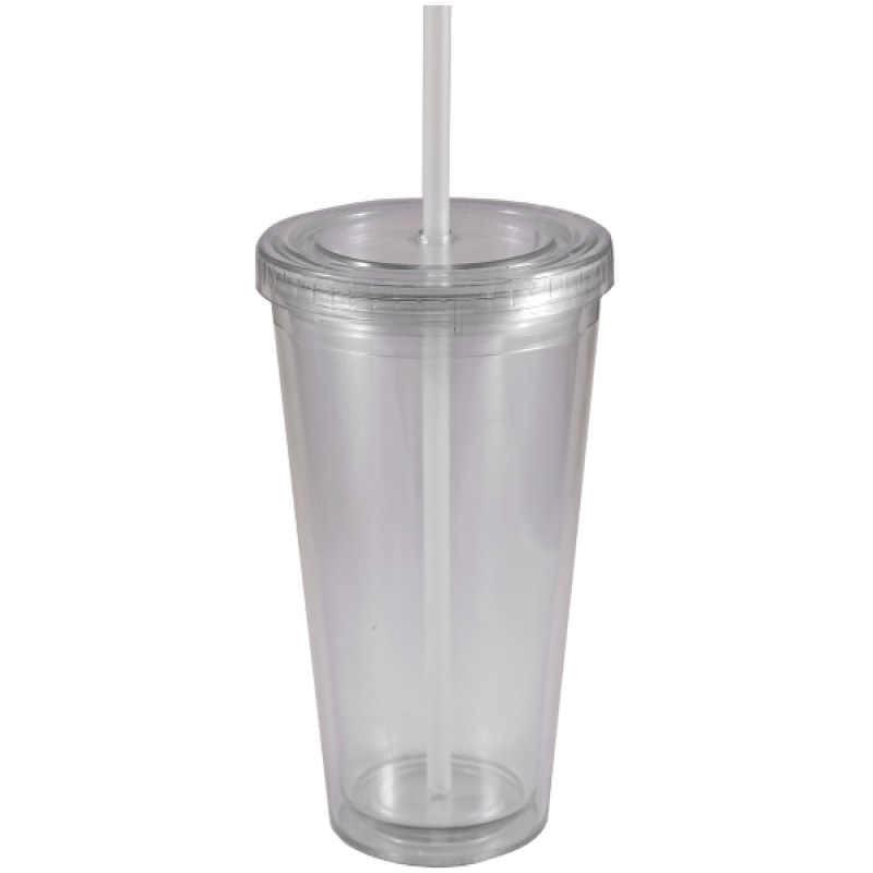 Enjoy the journey with this 20 oz. double-wall acrylic insulated tumbler that comes with matching screw-on acrylic lid and straw. Straw features the safety slip holder on the bottom. Reusable tumbler fits most auto cup holders. Keeps cold beverages cold, and hot beverages hot. Does not sweat. BPA Free and Prop 65 compliant. Hand Wash Only. 2.65″ W x 7.5″ H. Complies with FDA, Prop 65. 2.65″ W x 7.5″ H