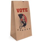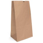 Durable brown kraft paper S.O.S. Bag features a side gusset and a serrated cut top. Brown kraft paper is made from 100% recycled paper with a minimum of 95% post-consumer content. 8 1/4″ W x 5 1/4″ D x 16 1/8″ H