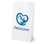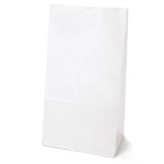 Durable white paper S.O.S. Bag features a side gusset and a serrated cut top. 8 1/4″ W x 5 1/4″ D x 16 1/8″ H