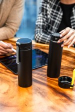 22 oz. single wall aluminum sports bottle. Accented silicone carrying strap. Spill Proof. Fits most cup holders. Wide opening for ice cubes. Complies with ASTM, CPSIA, C-TPAT, FDA. 2.5″ L x 8.5″ H