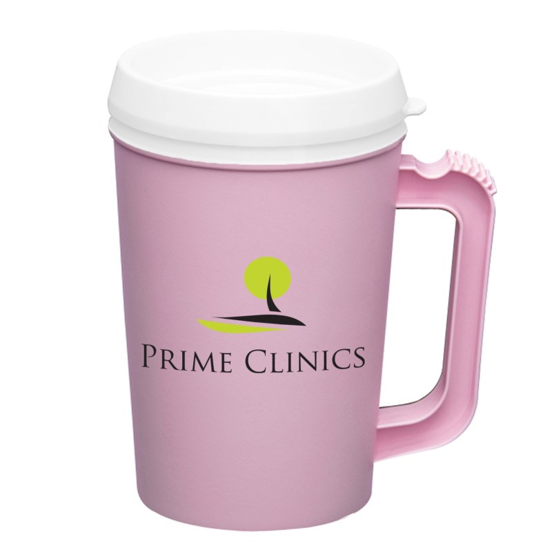 Double wall insulatedRibbed thumb stabilizer on handlePlastic inner linerMade in the USAAssortments available in up to 3 different colorsFDA ApprovedBPA FreeHand wash recommended and not intended for microwave useDue to the manufacturing processes, some item color variations may occur from one mold to the next.Close registration is not recommendedNo samples available