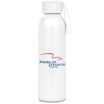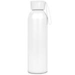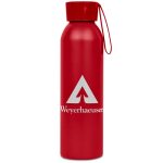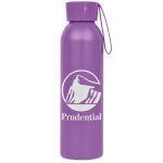 This eco-friendly water bottle is the perfect companion for all your adventures. Its aluminum construction ensures durability and long-lasting use, making it ideal for hikes, camping trips, or daily commutes. The single-walled design makes it lightweight and easy to carry, so you can stay hydrated without any added weight. The silicone strap adds convenience, allowing you to take it everywhere with ease. Made of recycled aluminum and available in soft matte colors, this bottle is not only stylish but also environmentally conscious. The plastic screw-on lid with a silicone strap ensures a secure closure, while the easy-to-clean design makes maintenance a breeze. Hand wash only to keep this handy water bottle in top condition for all your hydration needs. Complies with Prop 65. 2 1/2″ W x 9 1/4″ H