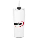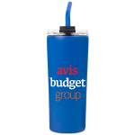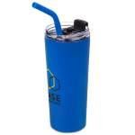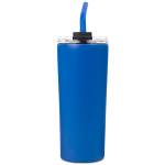 Quench your thirst in elegance with our chic and eco-friendly water bottle. This 22 Oz. reusable bottle not only boasts a stylish design but also aids in reducing your carbon footprint by eliminating the use of disposable plastic bottles. It comes equipped with a clear screw-on lid and a reusable straw. The double-wall vacuum insulation ensures that your beverages stay cold for up to 11 hours and hot for up to 7 hours. Crafted from recycled 18/8 stainless steel, this BPA-free bottle features a soft matte finish with a durable powder-coated coating. Complies with ANSI, CCPSA, CPSIA, Prop 65. 3 1/2″ W x 8 1/4″ H