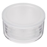 Durable Tritan™ Material. Impact And Shatter Resistant. Snap-On Lid Included For Easy Storage and Transport. Proposition 65 Compliant. Complies with Prop 65. 5.25″ D x 3″ H