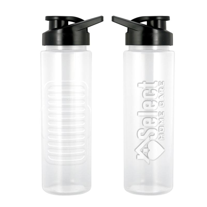 24 oz. refillable water bottle. Includes easy pour lid with handle. Logo and grip debossed on bottle. BPA free; Not recommended for dishwasher or microwave. Complies with FDA, Prop 65. 2.75″ Diameter x 9.5″ H