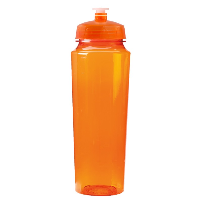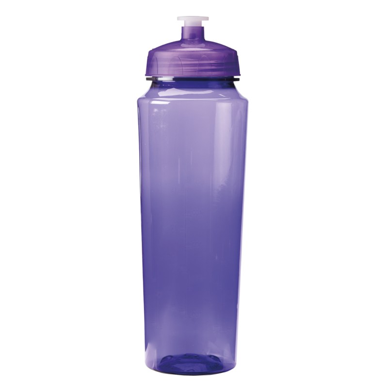 Food grade PET bottle is reusable and recyclable. Reveals drink measurements from 4 oz to 24 oz (100 ml to 700 ml). Features a high gloss finish and a leak-resistant push-pull lid. Wide-mouth design makes it easy to add ice cubes. Ships assembled. Hand wash only. BPA Free. Fits most auto cup holders. Standard lid colors available: Blue, Red, Purple, Green, Orange, Pink, Clear, Aqua Blue, Yellow, Smoke Gray, Black, White. Complies with Prop 65. 10″ H x 3 1/4″ Diameter