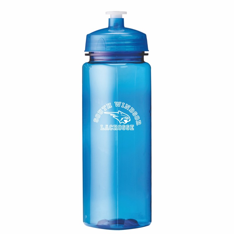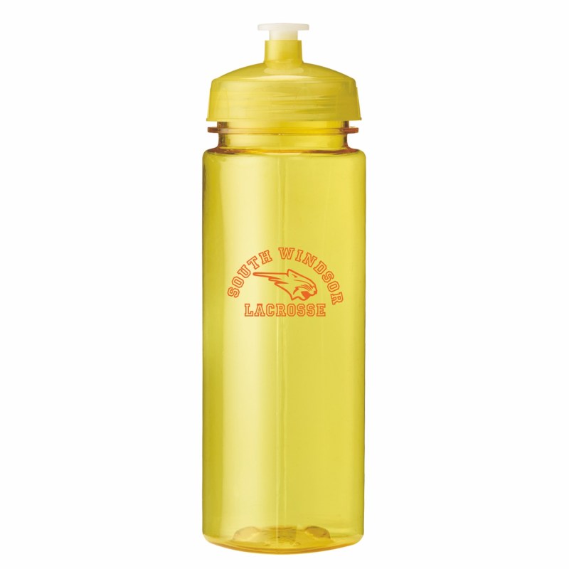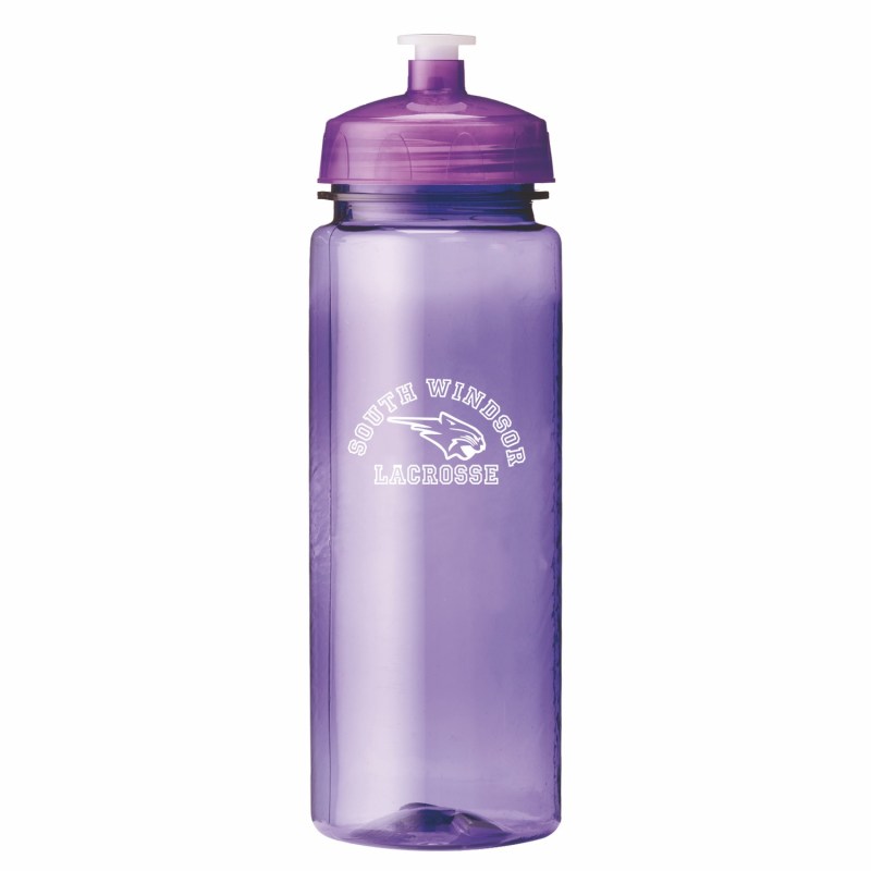 The lustrous, high gloss finish bottle features a 3-sided, modern design comfortable to hold. Reusable and recyclable, the bottle features a wide-mouth lid making it easy to add ice cubes. These BPA free bottles have a leak-resistant lid, and fit most auto cup holders. Hand wash only. Ideal for sports teams, fitness centers, schools, and corporations. Standard Lid colors available: blue, red, purple, green, orange, pink, clear, aqua blue, yellow, smoke gray, black and white. Complies with Prop 65. 2 7/8″ D x 9 1/8″ H
