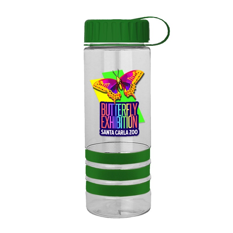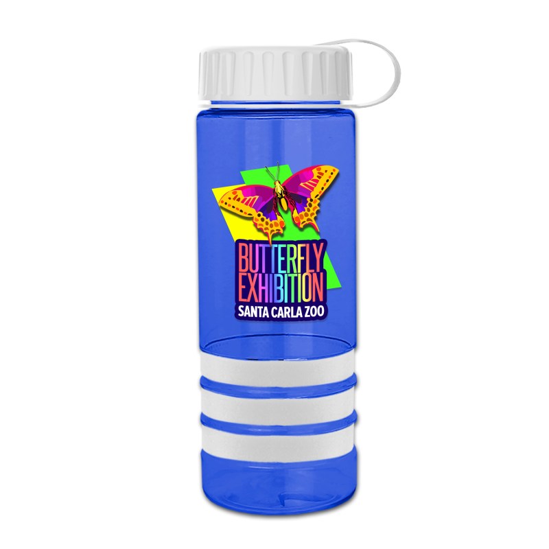 Digitally imprinted 24 oz Wide mouth Sergeant Stripe Bottles with?Tethered?Lid molded with food safe. Dishwasher safe. BPA Free TritanFDA Compliant ? Safe for Food ContactMix & Match Band and Bottle colors minimum 50 units per color combination. Complies with ANSI, CPSIA, FDA, Prop 65. 9.5″ H x 2.875″ Diameter