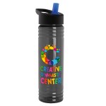Stay hydrated in style with our Molded in 100% Post-consumer Recycled PETE Slim Cylinder Design 24 oz. UpCycle Sport Bottles with Flip Straw Lid. This tall, narrow water bottle is perfect for health and fitness promotions, and is reusable, refillable, and recycled, making it great for the environment. The bottles are BPA-free and food compliant, and ship assembled at no extra charge. Each bottle is individually poly-bagged for convenience, and should be hand washed only – do not microwave. Complies with ANSI, CPSIA, FDA, Prop 65. 9.75″ H x 2.75″ Diameter