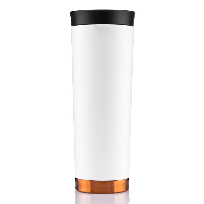 24 oz copper lined, vacuum insulated, 18/8 stainless steel tumbler. Keep your tea hot for 8 hours and your iced coffee cold for 16 hours. It also has a 360 black lid that makes drinking that much easier. Dishwasher safe. GIft box included. Complies with ASTM, CPSIA, C-TPAT, FDA. 8.75″ H x 2.75″ Diameter