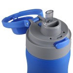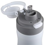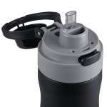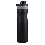 Introducing the 24 Oz. Vertex Powder Coated Recycled Stainless-Steel insulated Bottle, the ultimate solution for keeping your drinks at the perfect temperature on the go. This eco-friendly sports water bottle is designed with a copper-lined double wall construction, ensuring that your beverages stay hot for up to 6 hours or cold for up to 12 hours. With a leak-proof cover lid, push button opening, screw-on dual lid with retractable straw, wide mouth for adding ice, and a lockable easy carry handle, this bottle has everything you need for convenience and functionality. Stay hydrated and stylish on any adventure with this sleek and durable stainless-steel bottle. 10 3/4″ H x 3″ D
