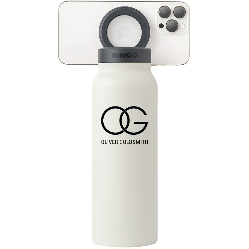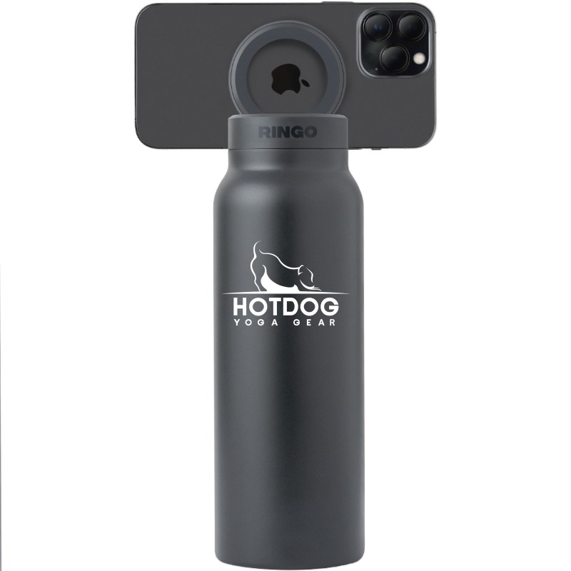 The 24oz Ringoâ„¢ Stainless Steel Bottle combines hydration and innovation in one sleek design. Featuring a MagSafe-enabled lid with a 90-degree hinge, Ringo securely holds your phone and adjusts to the perfect angle for selfies, Zoom calls, or group photos—whether in portrait or landscape mode. Crafted from premium stainless steel, it keeps your drinks hot or cold while ensuring you stay hands-free and picture-ready. Ringoâ„¢ is the ultimate multitasking bottle for life on the go. 10″ h x 3″w. FULL CASES ONLY