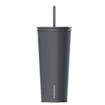 25 Oz Capacity, Stainless Steel, Double Wall, Copper Insulation, Spill Proof, Built In Straw, Slim Design, Cup Holder Friendly, Durable, Sweat Free. 8.1″ H x 3″ W