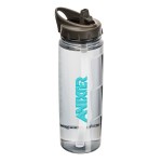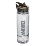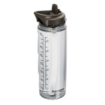 26 Oz. Tritan™ water bottle. Spill-proof wide-mouth screw on lid with easy one-handed flip top straw for easy drinking and sport loop. Fits in most cup holders! Molded slip-free grip for easy hold. Printed measurement markers. Best for cold beverages; hand wash recommended; not microwave safe. Complies with FDA. 9.5″ H x 3″ W