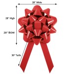Show-stopping large bows are made with weather-resistant, high-gloss PVC for indoor or outdoor use. Available in 22″ and 28″ sizes. Offered in a variety of colors and with multiple options for hanging. 28″ W x 28″ H
