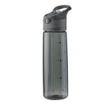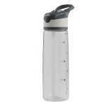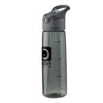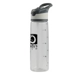 Water bottle features a drinking spout with straw. Auto flip spout flips up with a push of a button. Capacity markings for easy measuring and tracking. Screw on lid is built with a carrying handle and matching textured accent. Fits most vehicle cup holders. Hand wash recommended. 11 1/8″ H x 3 1/4″ D