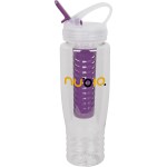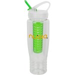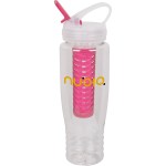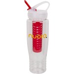 Fruit Infuser Bottle, Clear Curved Design, Flip Spout, Carabiner Handle, BPA-Free, Spill Resistant. 10″ H