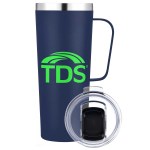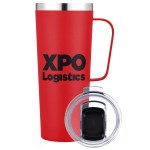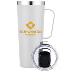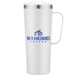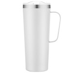 Stay refreshed with this 28oz. stainless steel camp mug, featuring double-wall insulation, a sturdy handle, and a clear slide lid. 3 1/2″ W x 9 5/8″ H